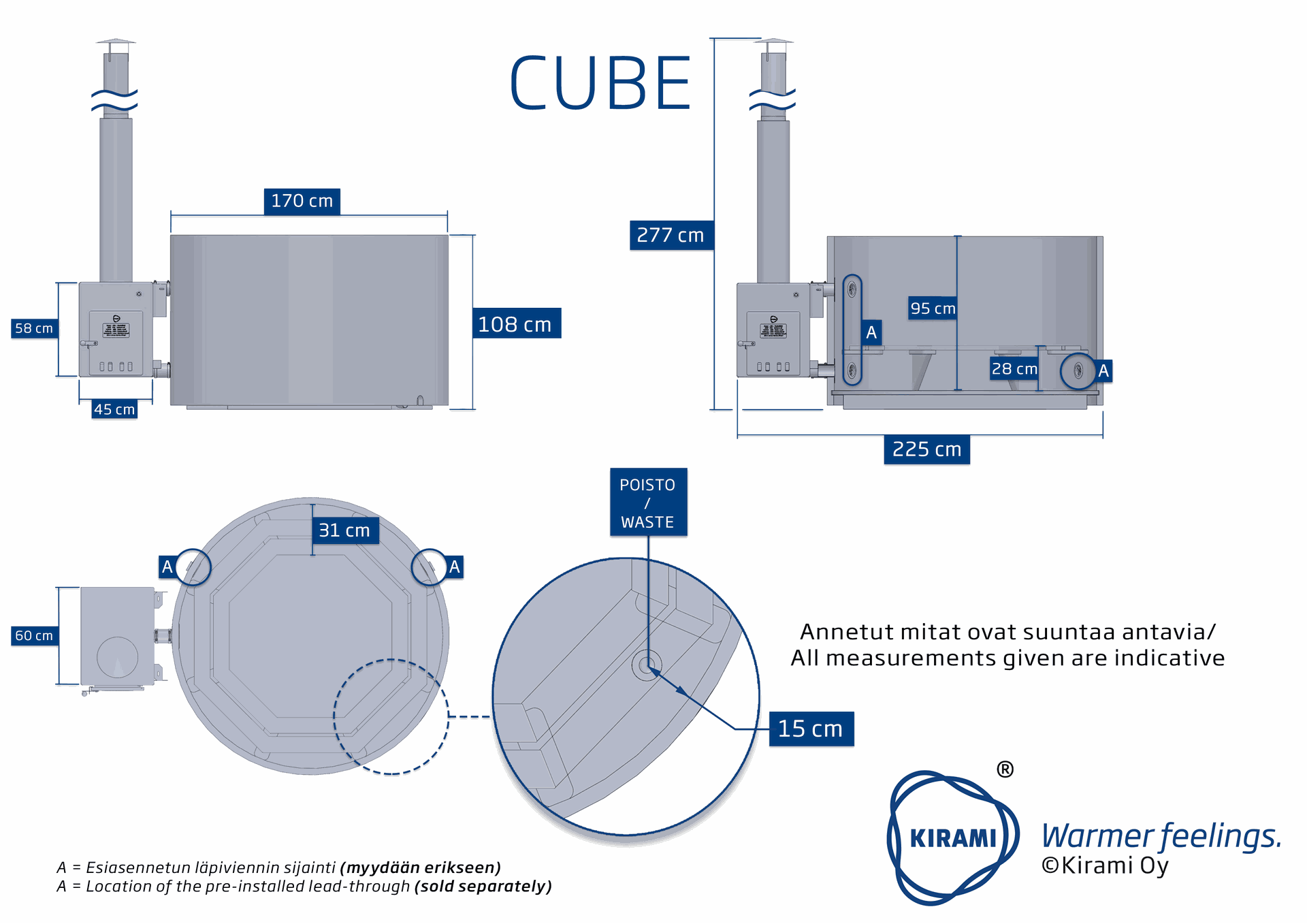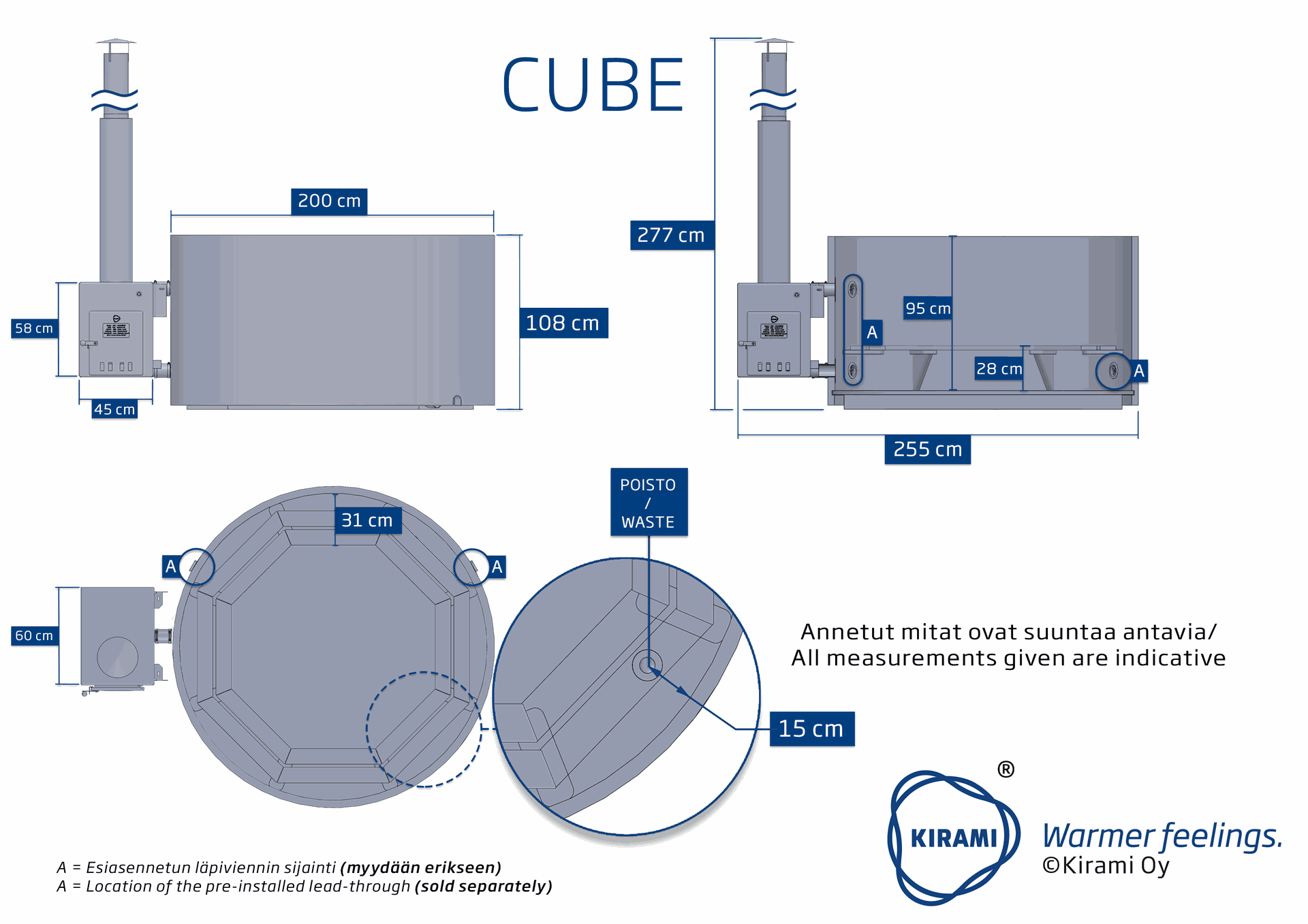 CUBE Ofen 48 kW: Der seitlich montierte Außenofen CUBE ist mit 48 kW (netto Heizleistung 35 kW) leistungsstark, einfach in der Bedienung und spart Platz im Badefass. Ein Aschebehälter befindet sich unter dem Brennraum. Sämtliche unserer Öfen werden aus Marine-Aluminium gefertigt und sind daher auch salzwassertauglich. Heizleistung: Anstieg von 30 Grad / pro 1000 Liter Wasser / pro Stunde